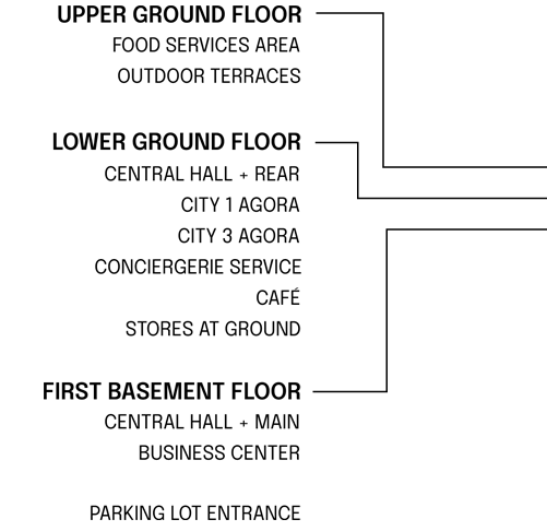 The restaurant is located on the ground floor between the City 1 and City 2 towers. Diners can choose from a self-service selection of starters, desserts and fruit.